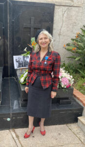 Monaco, cimetière, tombe de Joséphine Baker, 51 ans de son décès. Nathalie lui rend hommage en chansons en présence de deux de ses fils, Janot et Luis, son épouse et sa petite fille. Un grand moment d’émotion…