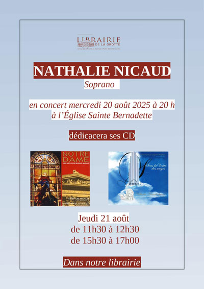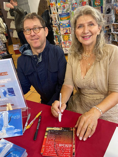 Jeudi 21 août 2025. Lourdes (65), Nathalie en dédicaces à la librairie de la Grotte, toujours aussi bien reçue par sa directrice Isabelle